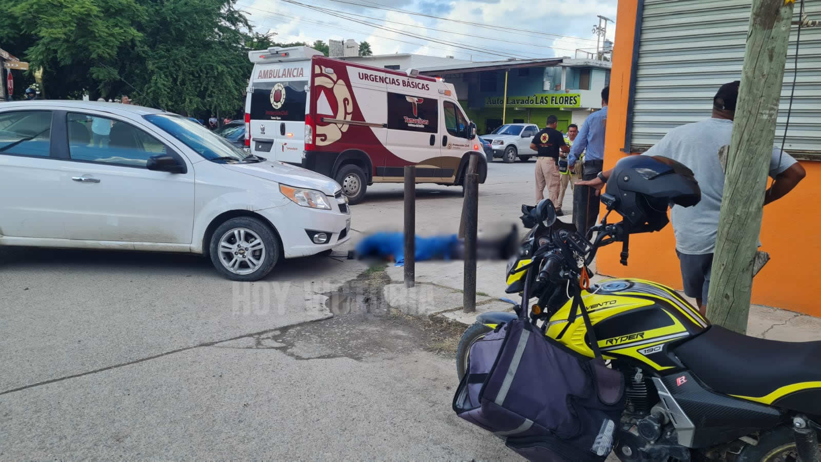 Los hechos ocurrieron en calle Pino con Av. Del Maestro en el Fraccionamiento Las Flores y según reportes el vehículo Aveo se desplazaba por la calle Av. Del Maestro al llegar a la calle Pino iba a dar vuelta a mano izquierda y la motocicleta al intentar rebasar fue impactada para posteriormente salir proyectada.