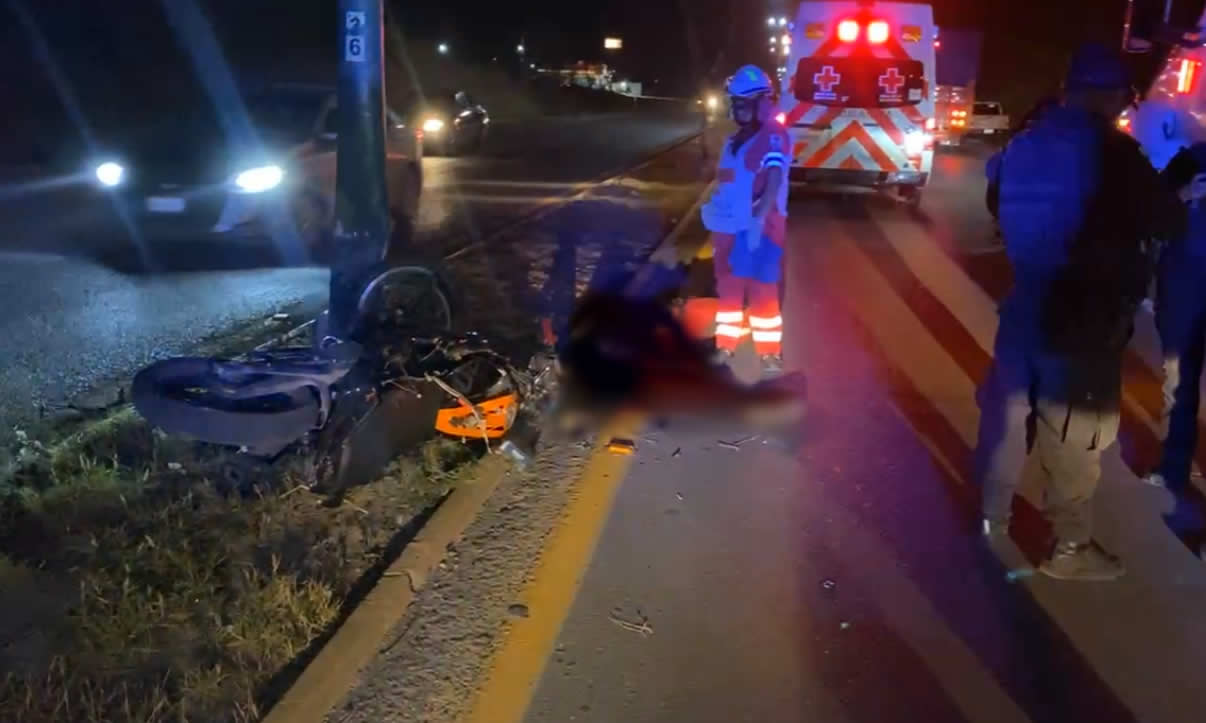 Este miércoles por la noche, un motociclista de aproximándote, unos 20-25 años de edad, perdió la vida de manera instantánea después de impactarse contra una luminaria en el libramiento naciones unidas km 17 + 800 antes de llegar a la entrada de la colonia Marte R. Gómez.