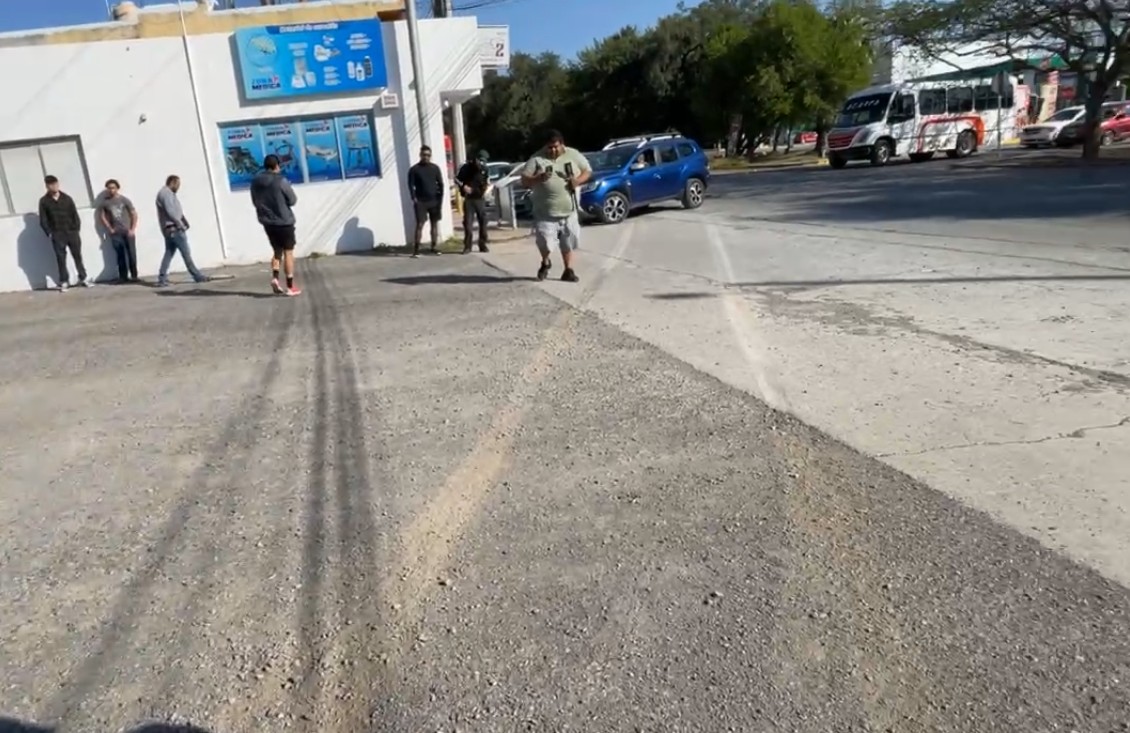 Cabe señalar que el conductor intento frenar, pero el exceso de velocidad y arena suelta sobre el pavimento le impidieron detener su unidad, dejando marcas de frenado de más de 10 metros.