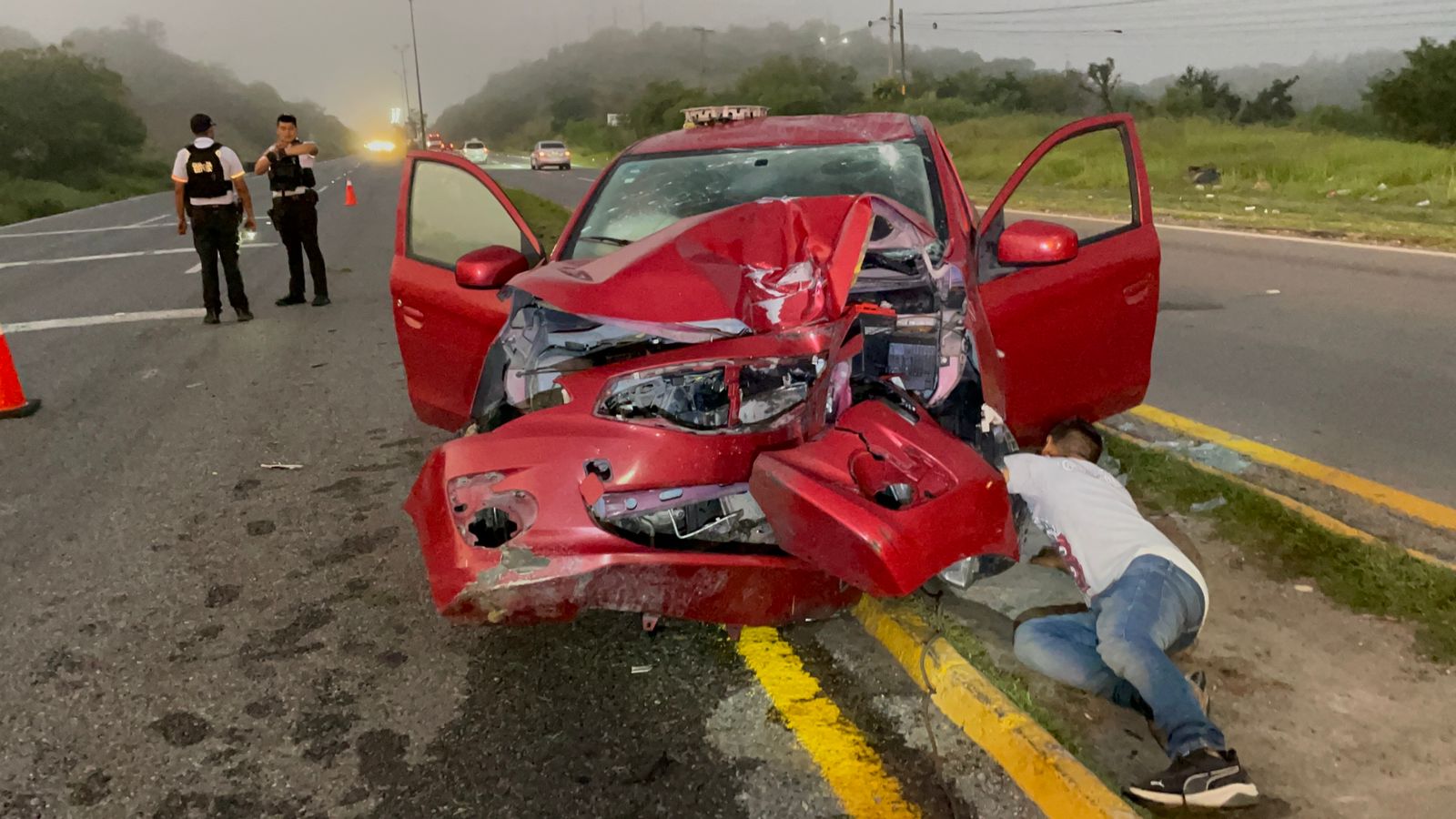 Después de el accidente, el vehículo quedó abandonado ya que su o sus ocupantes se dieron a la fuga.