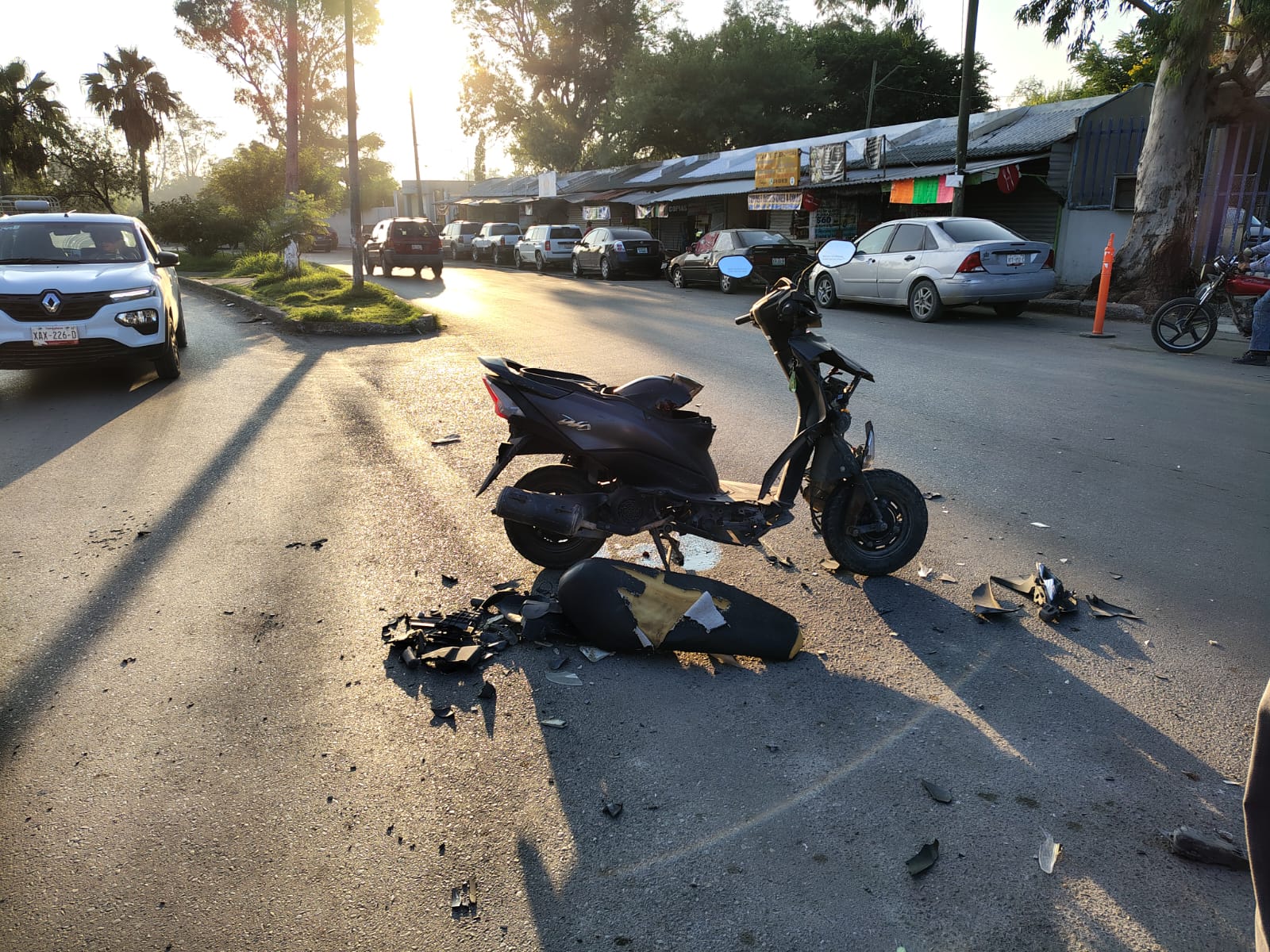 El accidente que dejó como pérdida total la motoneta ocurrió sobre la Avenida Justo Sierra frente a la clínica hospital del Seguro Social de la Loma.