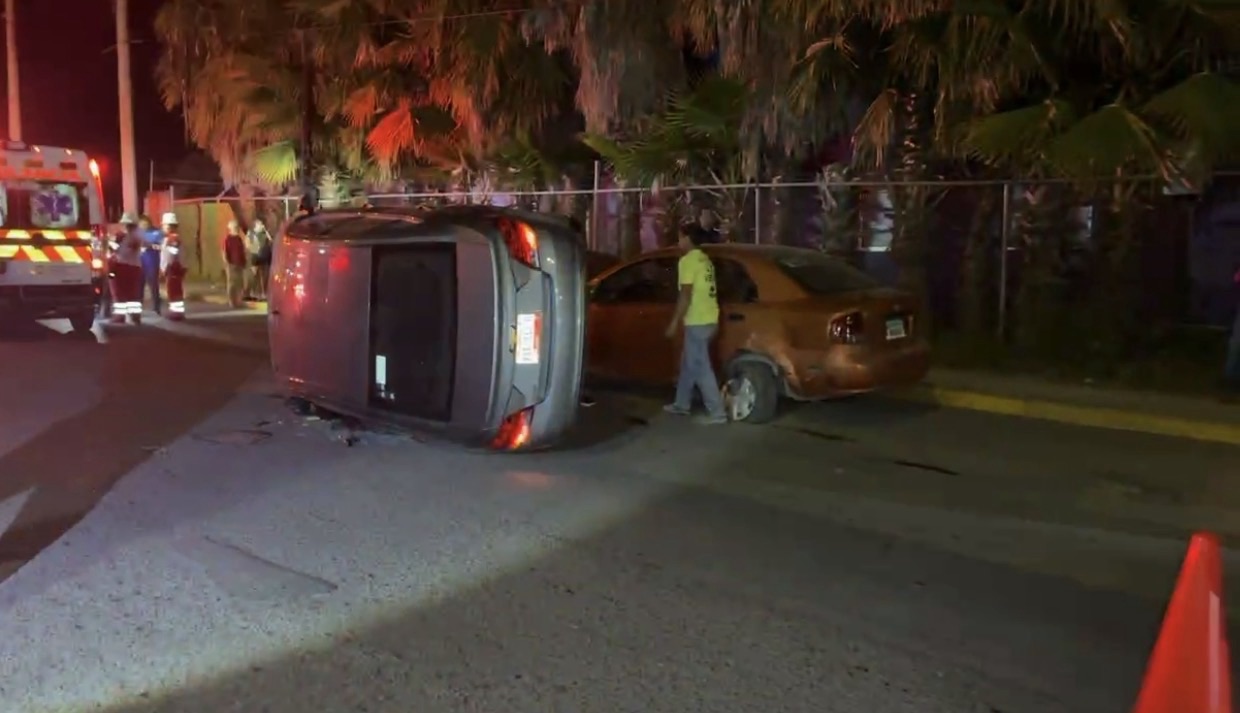 Tres personas lesionadas, entre ellas dos menores de edad, además de cuantiosos daños materiales, fue el saldo de un choque con volcadura registrado esta noche en el Bulevar Adolfo López Mateos.
